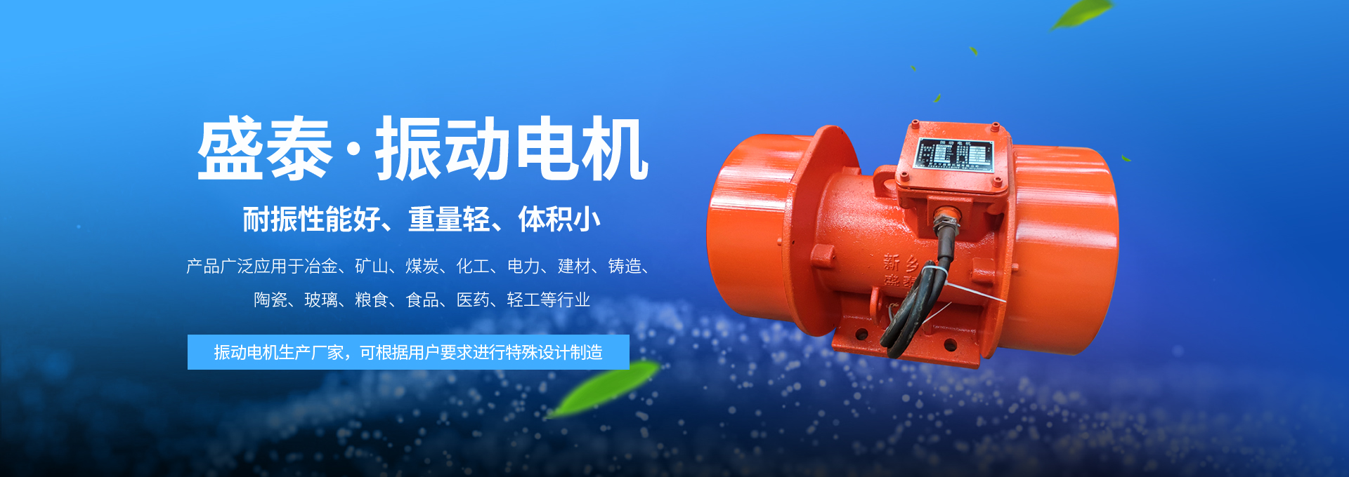 振動給料機、振動放礦機、振動干燥設備、振動篩分設備、振動落砂機、振實臺、料倉振動防閉塞裝置等各種振動機械設備理想的動力源和激振源。